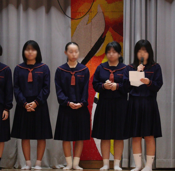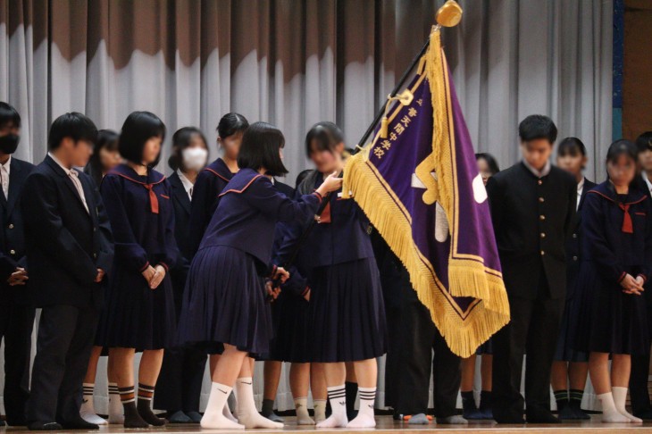 1月9日(金)生徒会引継ぎ式が行われました。旧生徒会執行部と旧生徒会長のあいさつでは、支えてくれた方たちへの感謝の気持ちや心に残っている出来事を話しました。