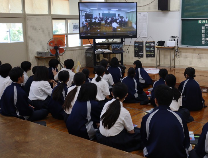 10月16日(木)1年生の音楽の授業の様子です。子ども達は、自分たちの歌っている姿と合唱の模範動画を見比べて、真似できることや工夫できるところをグループで考え、意見を発表しました。