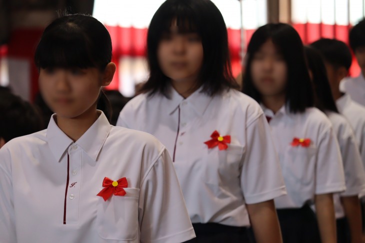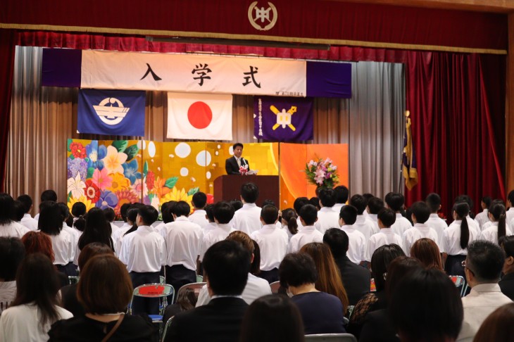 4月8日(水)新入生の入学を祝う入学式が挙行されました。リボン付けや入学式での心得を聞く間は緊張した様子も見られましたが、多くの来賓や保護者の皆さまの温かい拍手に迎えられ、入場する頃には、子どもたちにも笑顔が広がっていました。