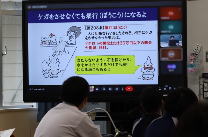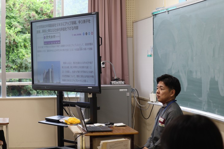 11月28日(金)1校時に少年犯罪防止講演会が行われました。講師に県警から棚原さんをお招きして、「犯罪の種類」や「犯罪行為が法律でどう定められているのか」「少年院の生活」等、例を挙げながら詳しくお話しいただきました。棚原さんは、話の中で繰り返し「悪いこと(犯罪)に手を染めてはいけない」と伝えています。子ども達は最後まで真剣な表情で話を聞いていました。講師の棚原さん、ありがとうございました。